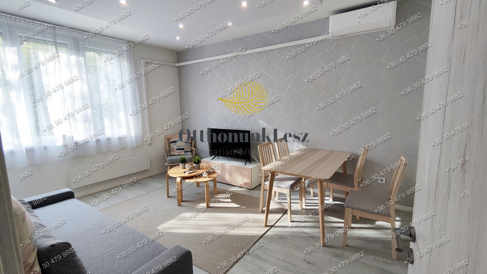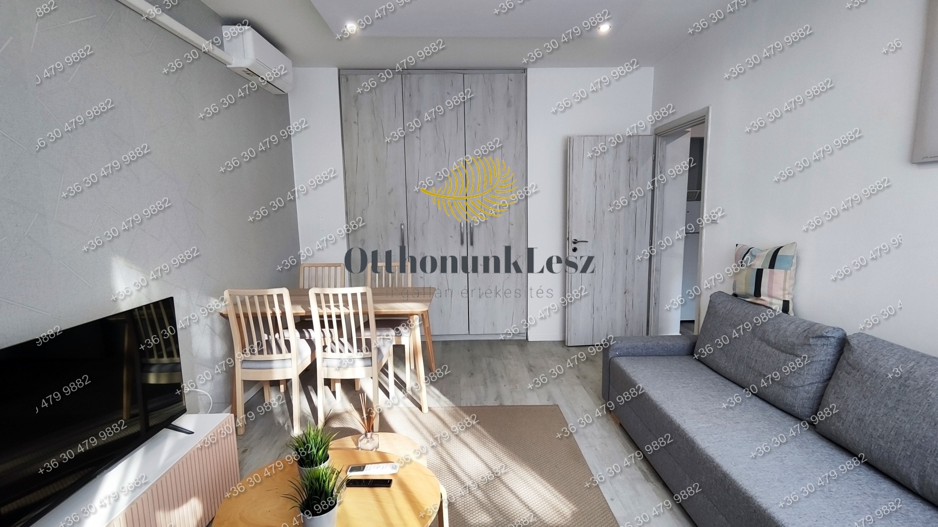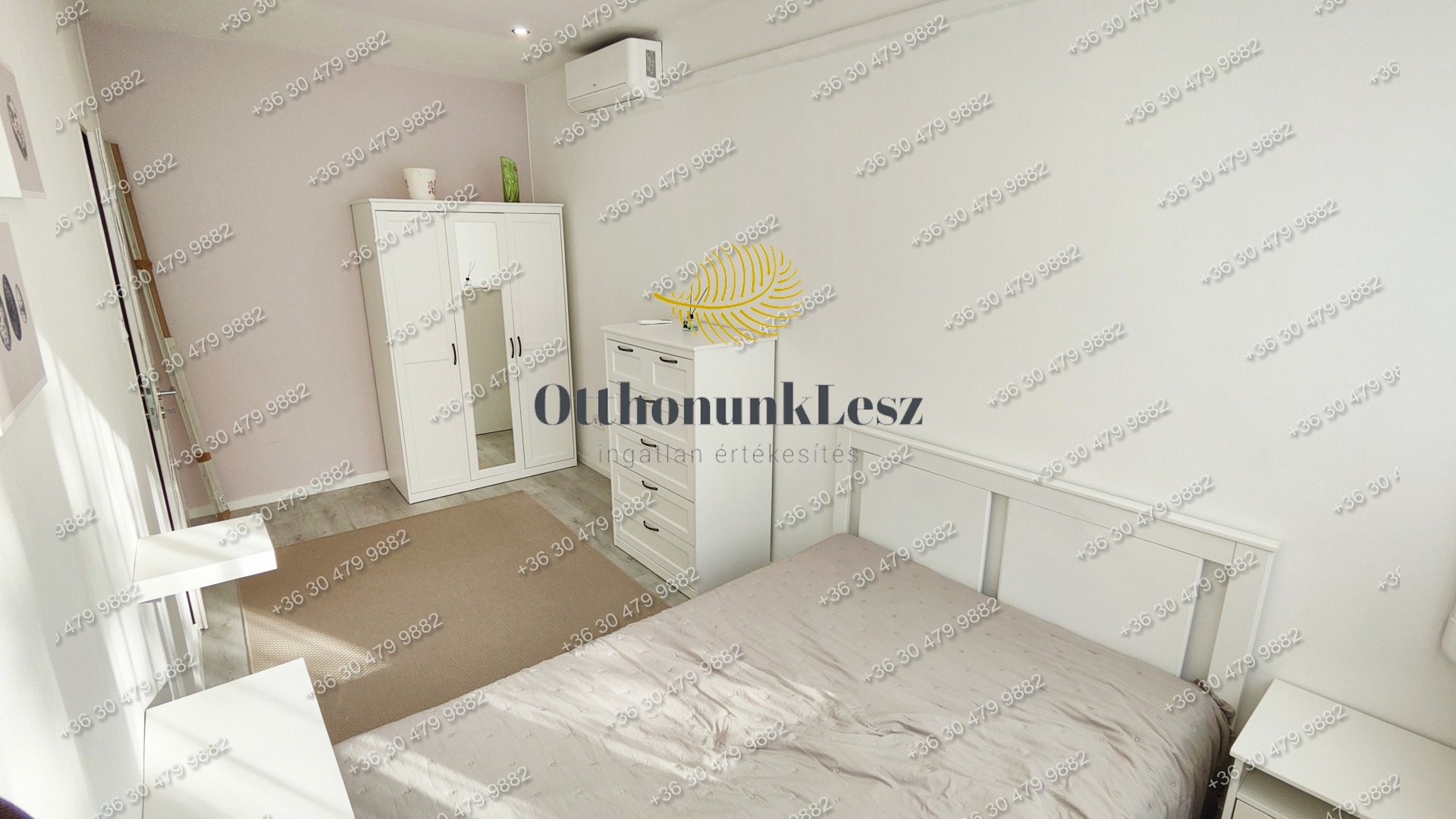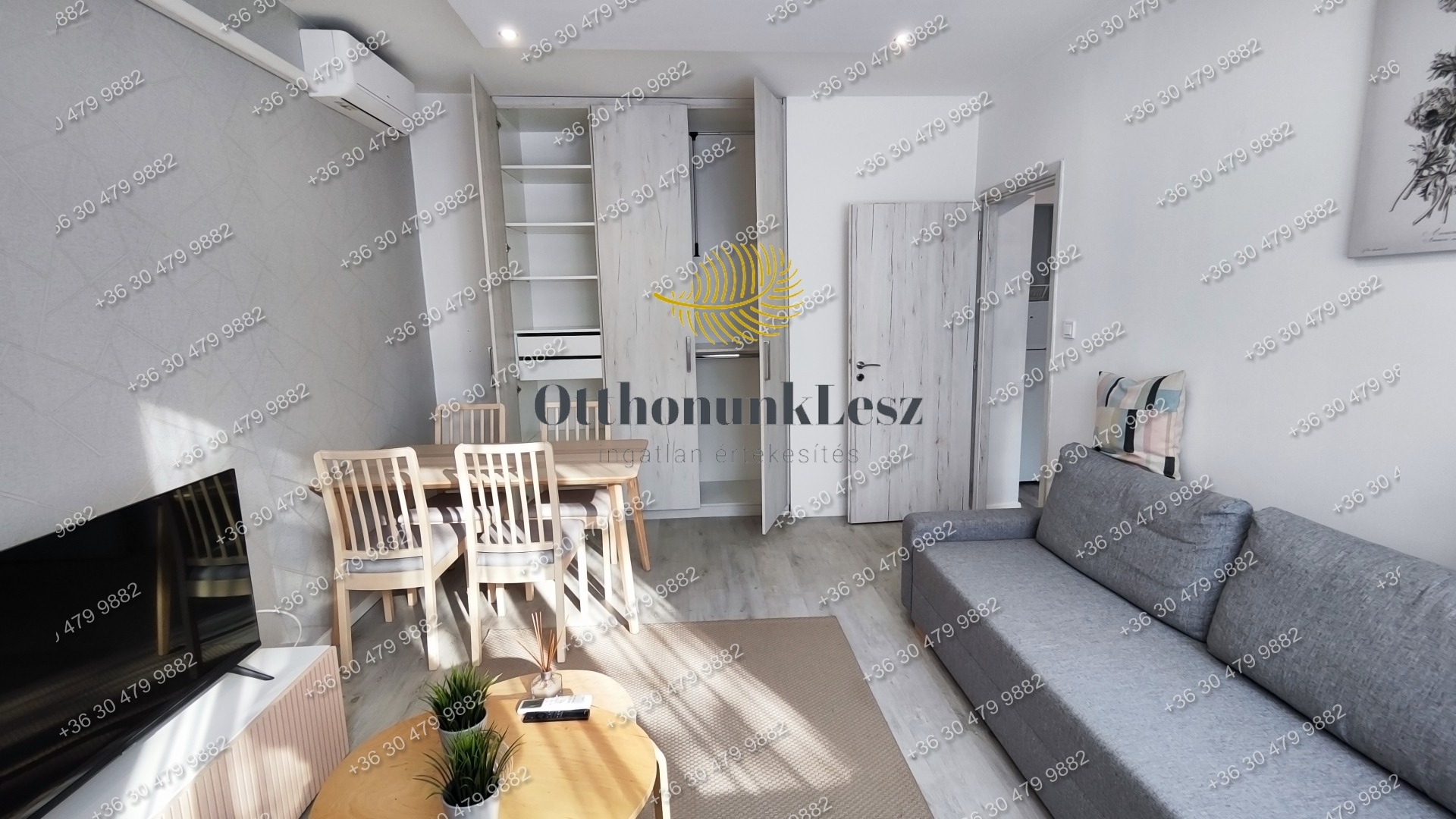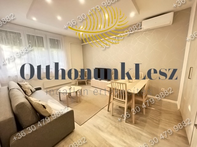 A lakás bútorozott, gépesített (beépített sütő, főzőlap, kombi hűtő, mosógép, 2 db klíma).