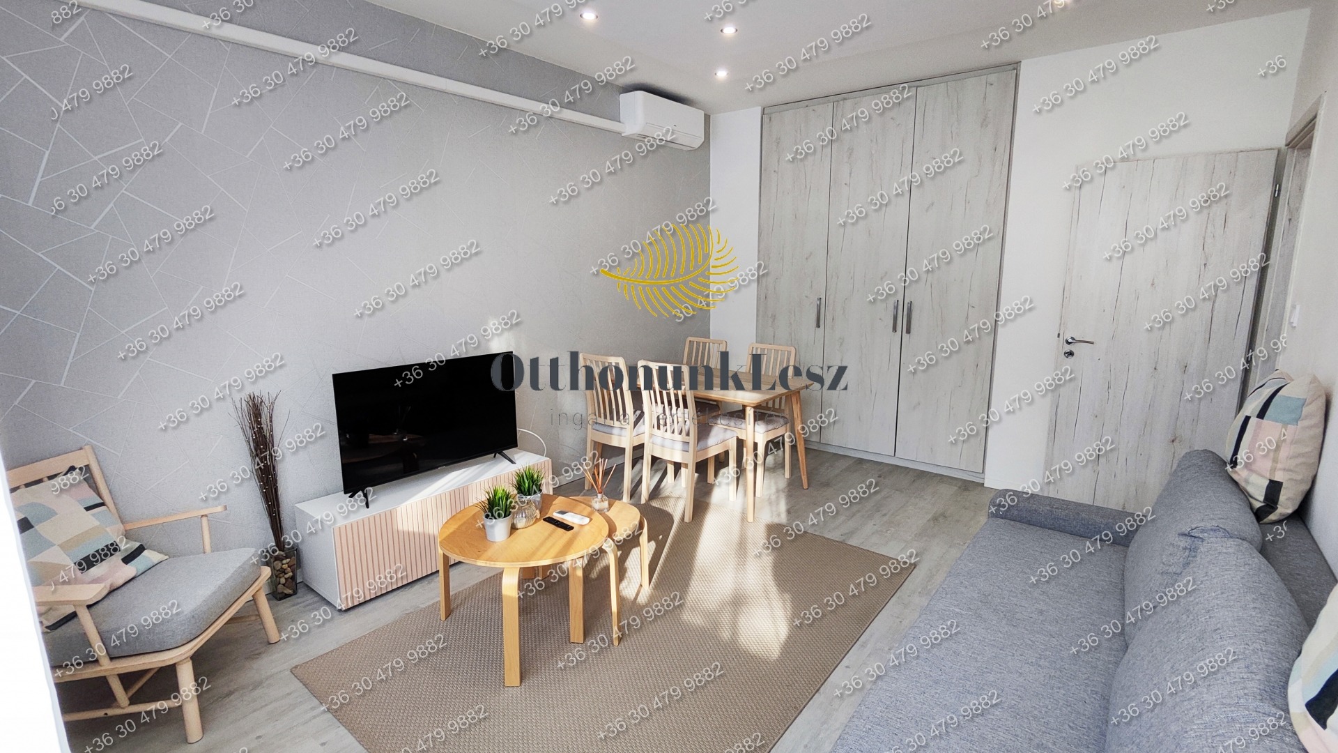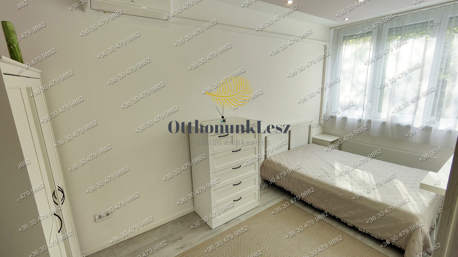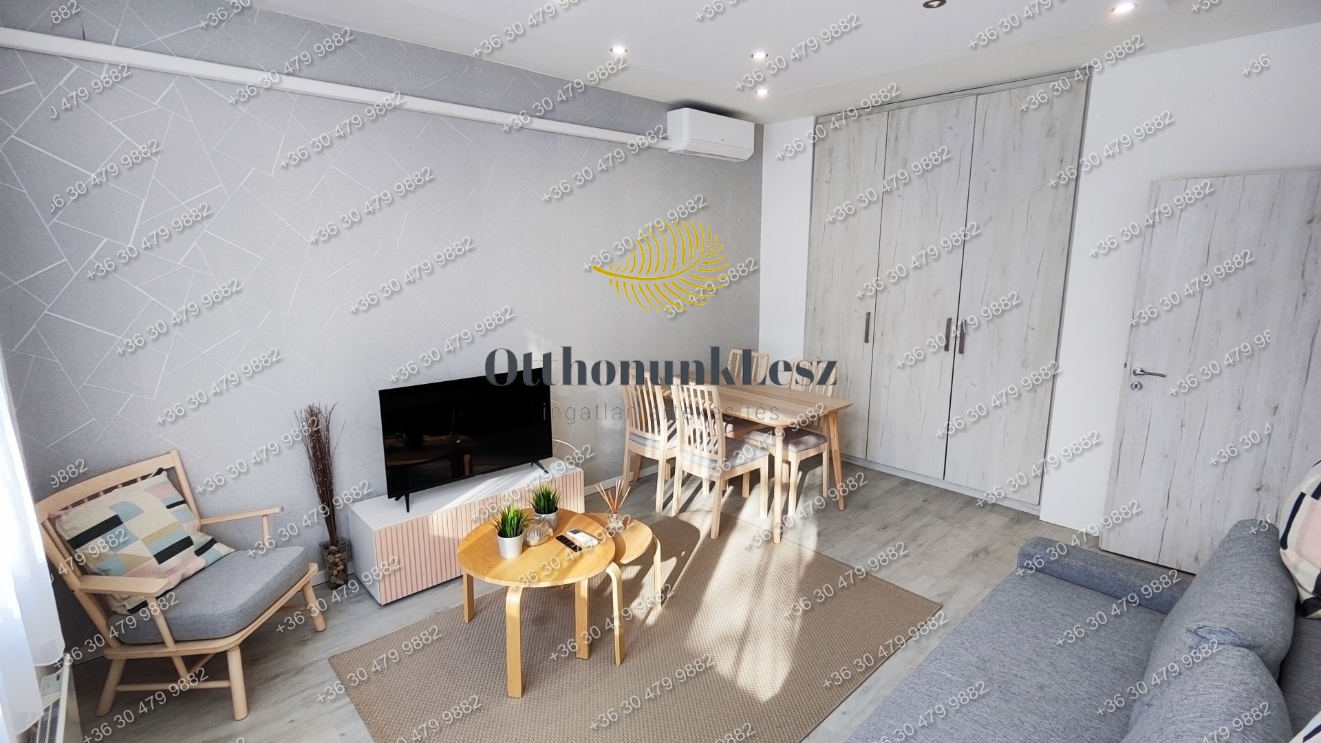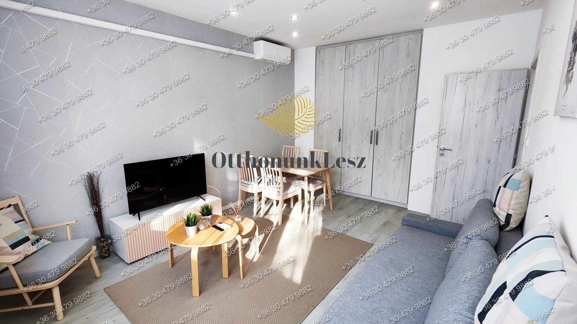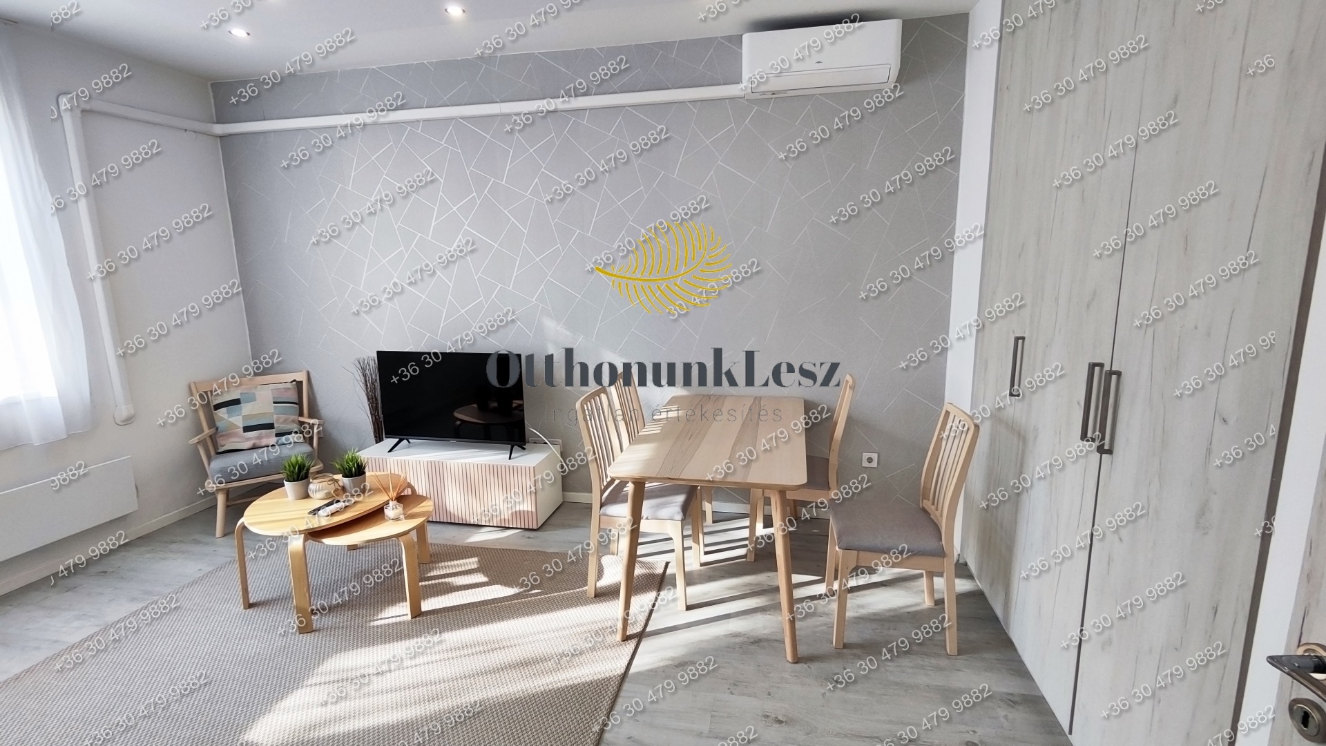 A lakás bútorozott, gépesített (beépített sütő, főzőlap, kombi hűtő, mosógép, 2 db klíma).