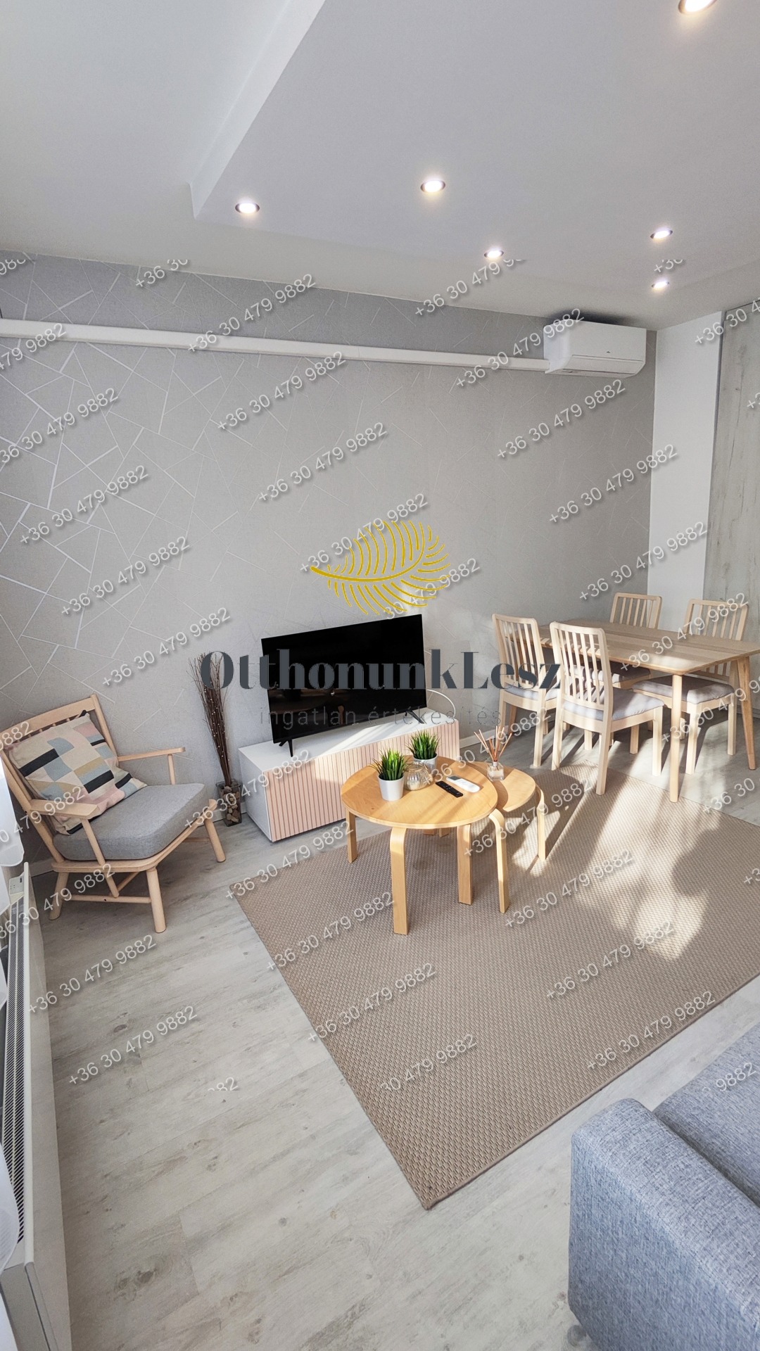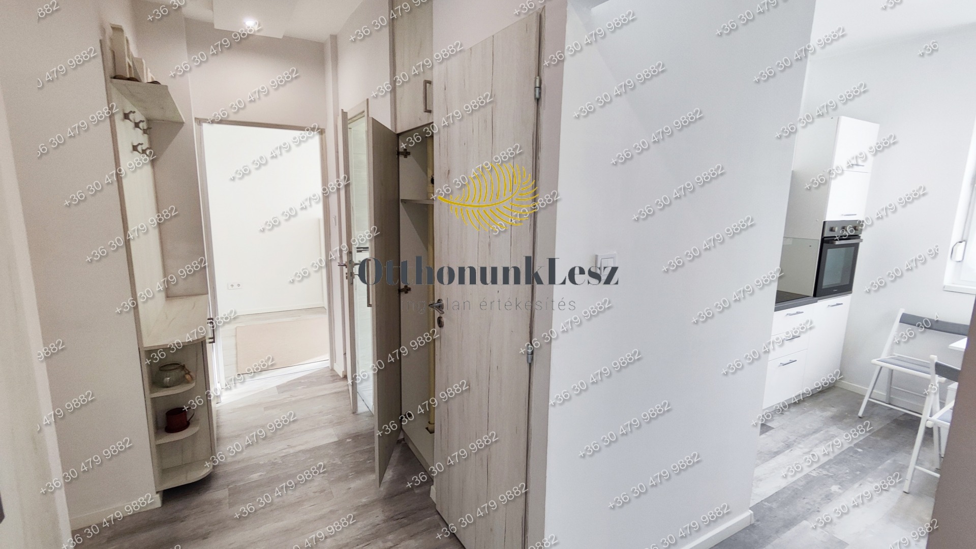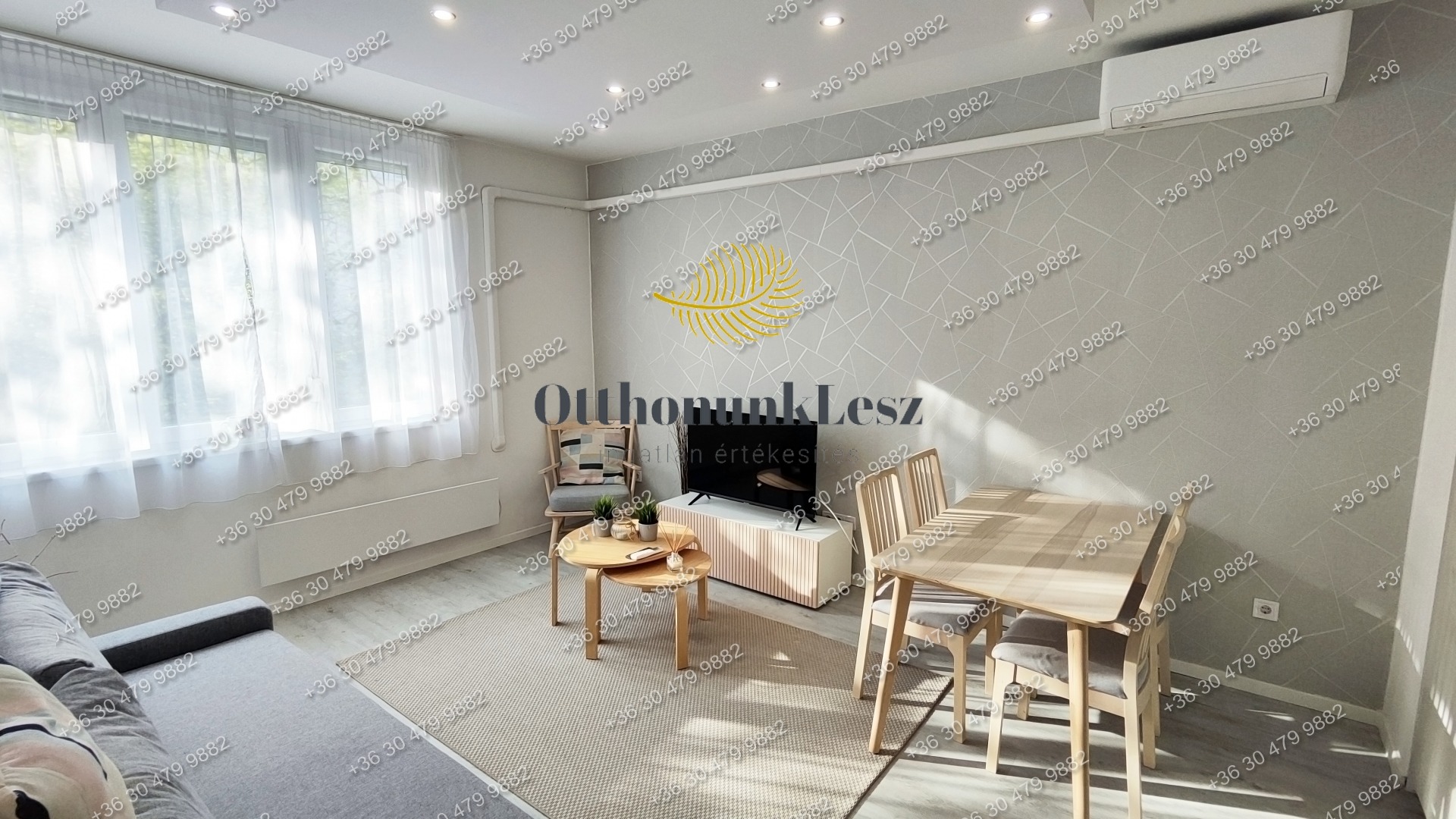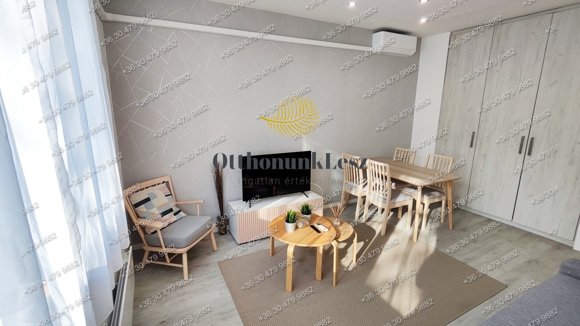 A lakás bútorozott, gépesített (beépített sütő, főzőlap, kombi hűtő, mosógép, 2 db klíma).