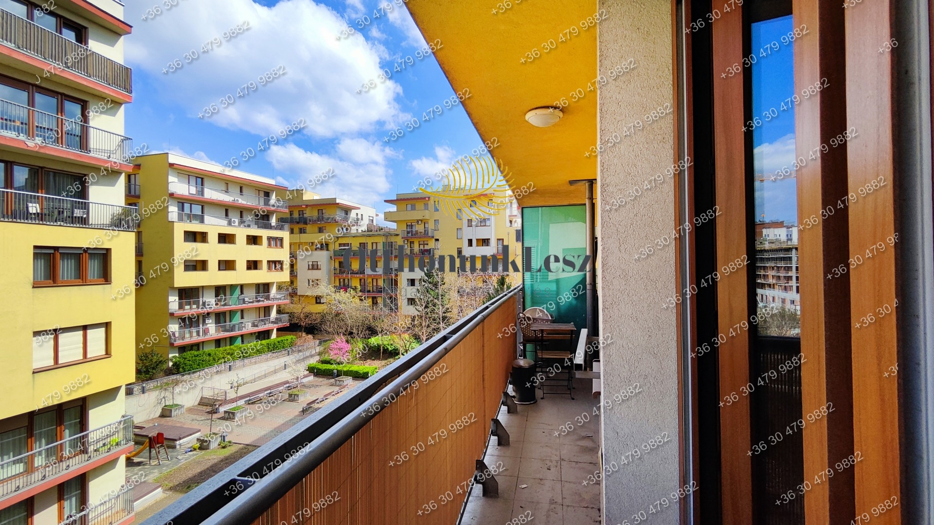 XIII. Úszódaru utcában – Marina Parton, Duna Terasz Házban - kiadó ez az ÚJSZERŰ, csendes, világos, 58 m2-es, 3 szobás (amerikai konyhás étkezős nappali + 2 külön hálószoba), fiatalos, jelenleg részben bútorozott, gépesített, Déli tájolású, udvarra néző, 3 erkélyes, 4. emeleti lakás, 7 emeletes liftes házban.