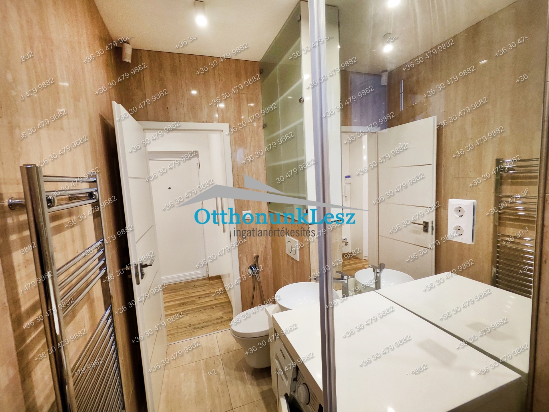 Kktg.: 15.000 Ft/hó, minden közmű egyéni mérők alapján fizetendő, fűtése központi, padlófűtés + klíma)
