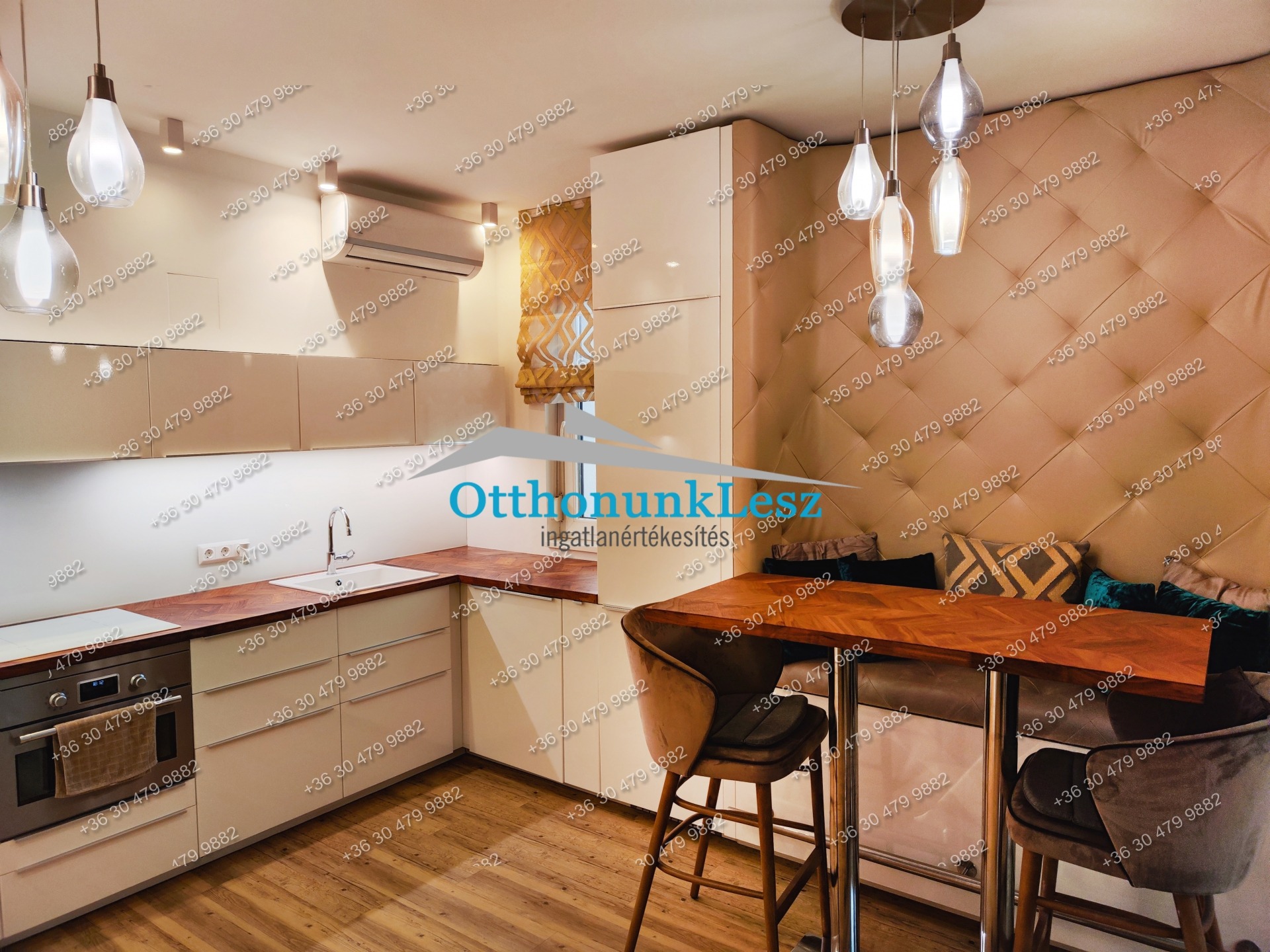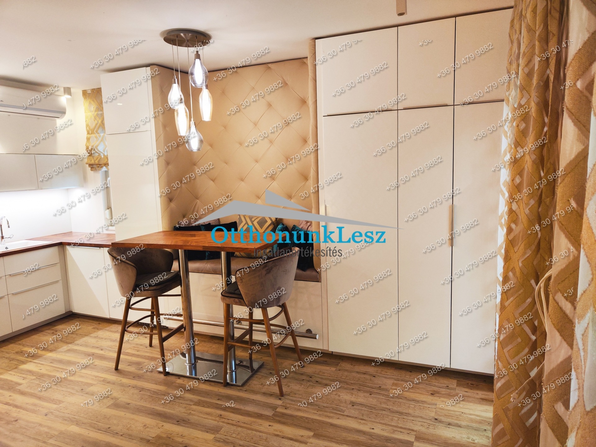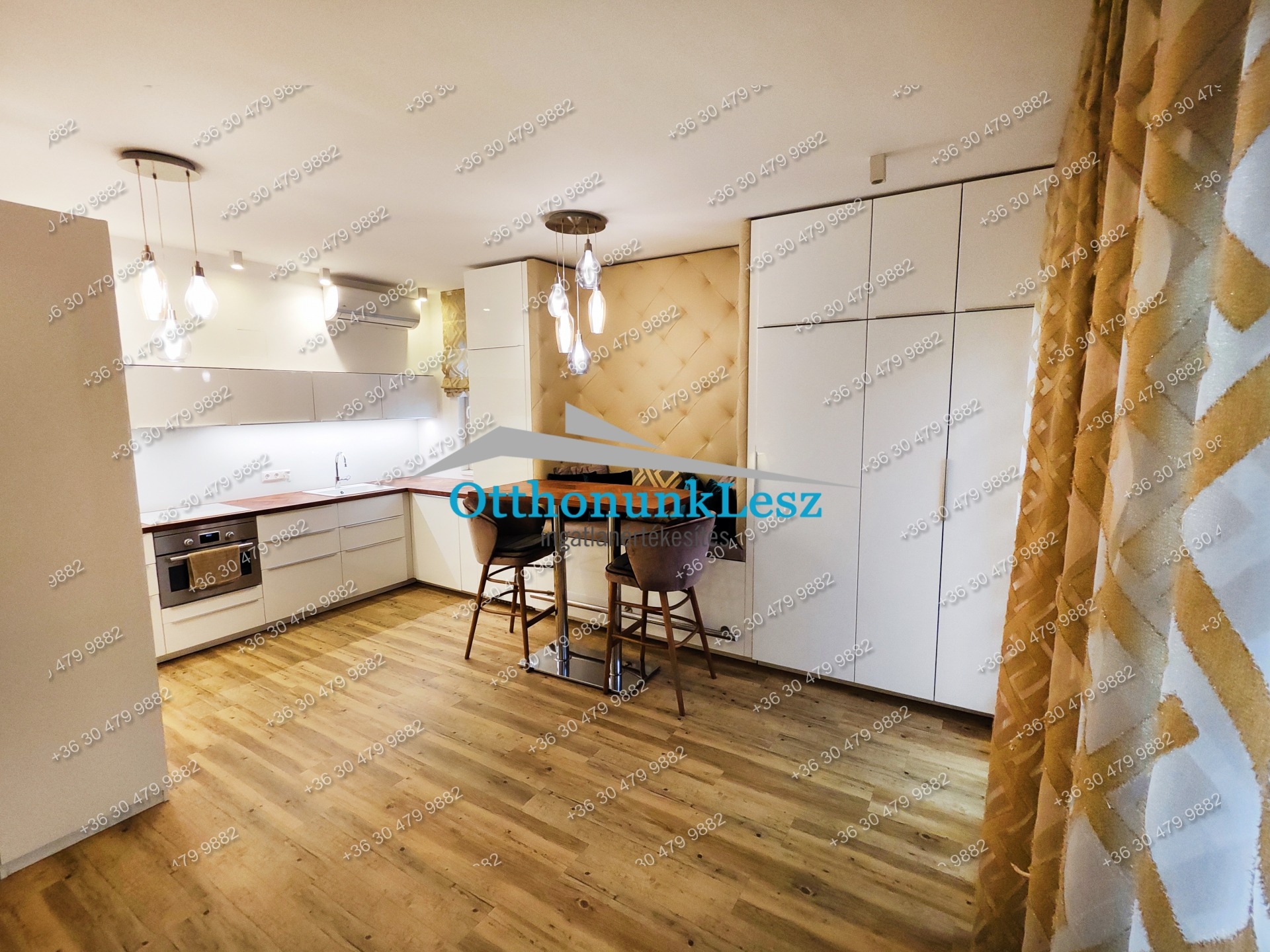 A lakás a képeken látható állapotban és berendezéssel kerül bérbeadásra, minőségi anyagokkal és bútorokkal, egyedileg tervezett konyhával, belsőépítész által megtervezve, bútorozottan, beépített szekrényekkel, gépesítve.