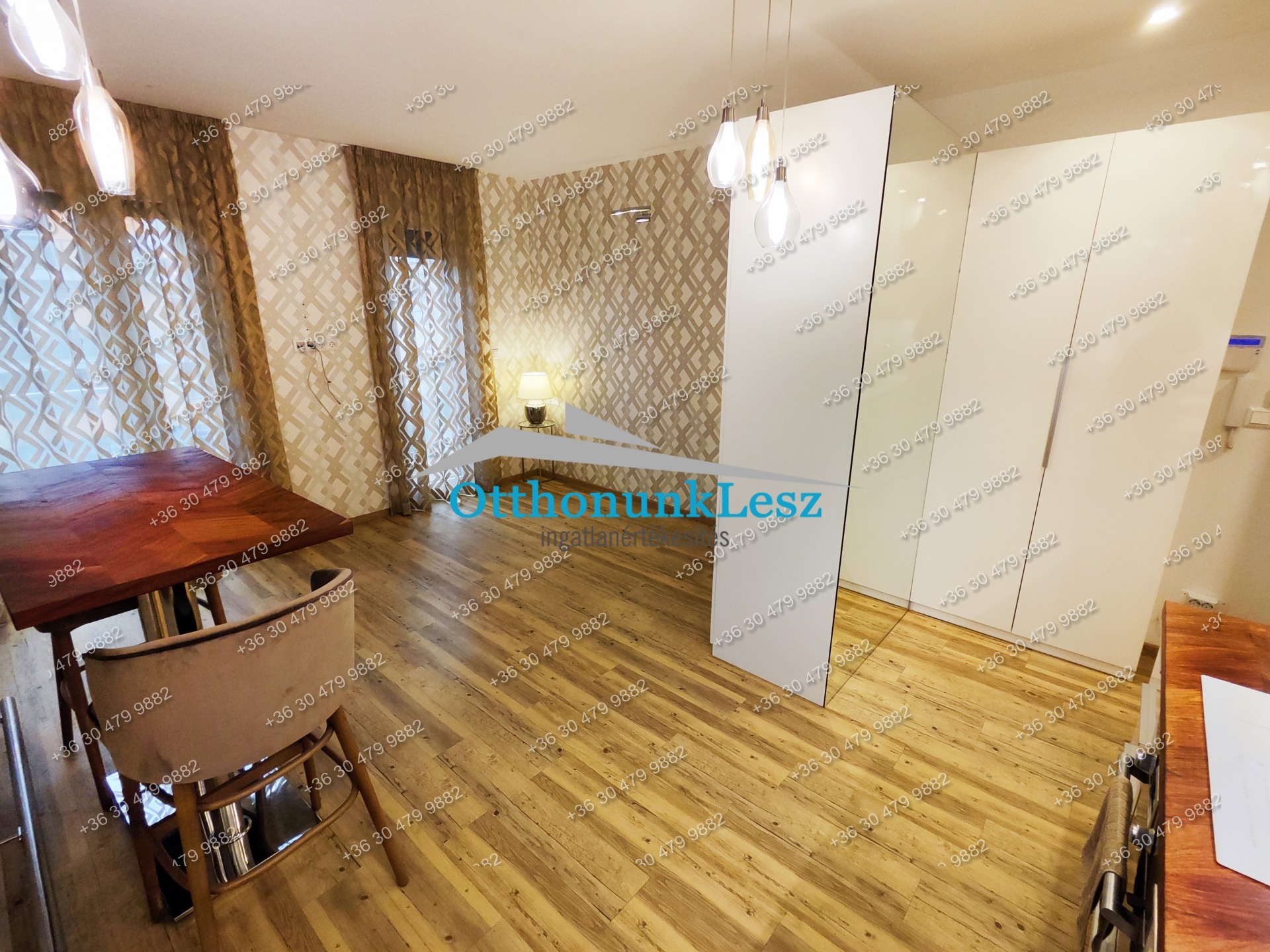 - 1 szoba (amerikai konyhás nappali, a szobarész a konyhától beépített szekrénnyel elszeparált)