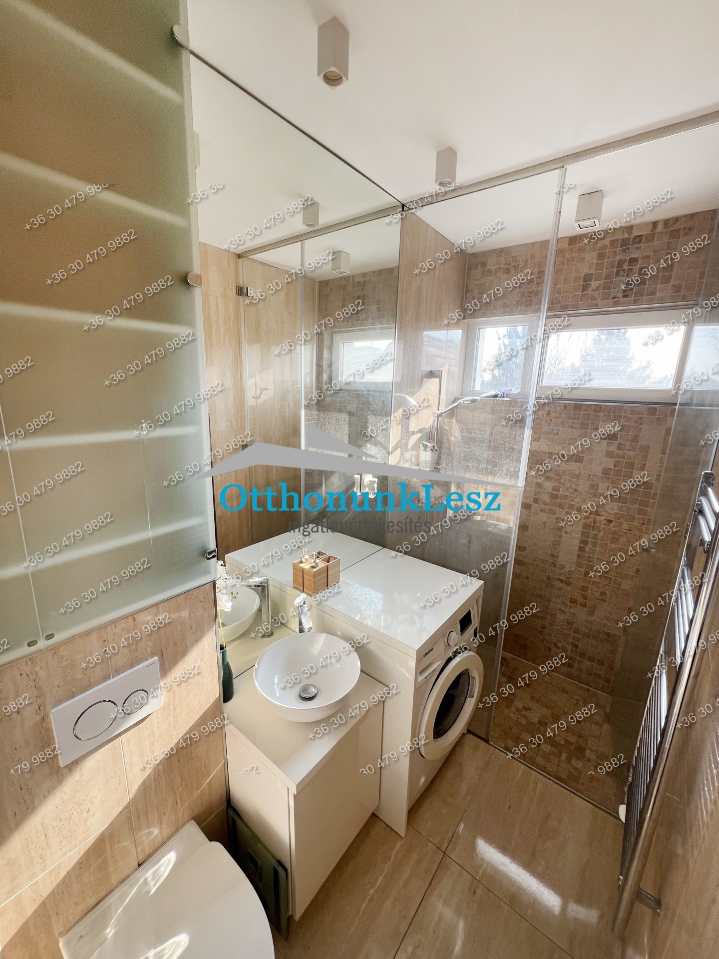 - világos, ablakos, zuhanyzós fürdő, wc-vel, sok tárolási lehetőséggel